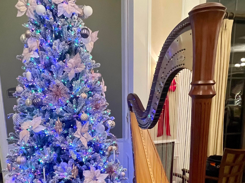 I’ll be providing special holiday harp music for the congregation.